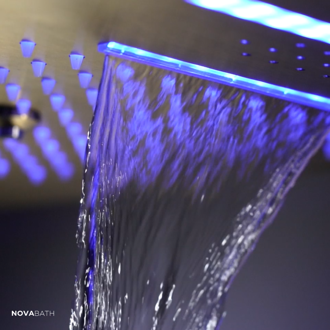 Les douches à effet pluie encastrées de NovaBath allient modernisme minimaliste et fonctionnalité luxueuse. Grâce à leur finition sans couture, les tuyaux et les raccords disparaissent dans le mur, donnant à votre salle de bain une apparence épurée et calme.