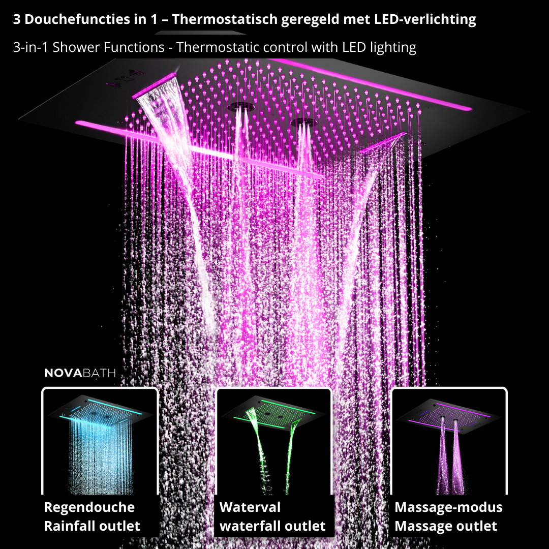 Avec les douches encastrées NovaBath, vous transformez votre douche quotidienne en un moment de pure détente – stylé, pratique et luxueux à la fois.