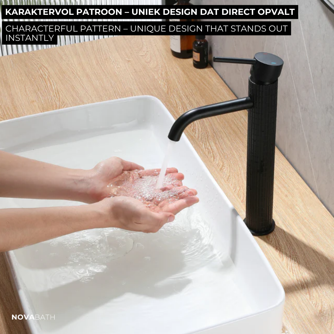 Avec le robinet de lavabo haut de NovaBath, vous transformez vos gestes quotidiens dans la salle de bain en une expérience luxueuse – élégante, pratique et durable.