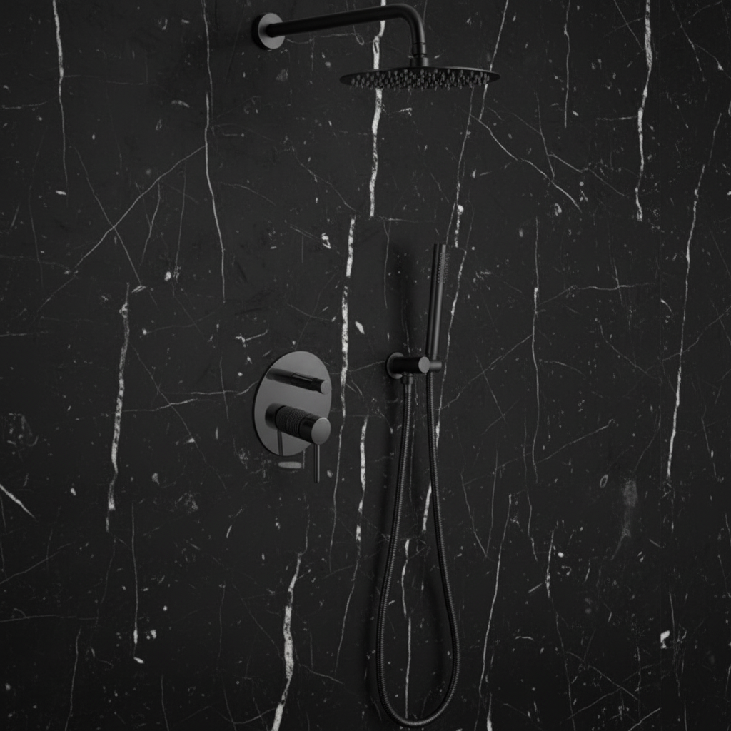 Inbouw Regendoucheset Angelica – Staafhanddouche – Mat zwart