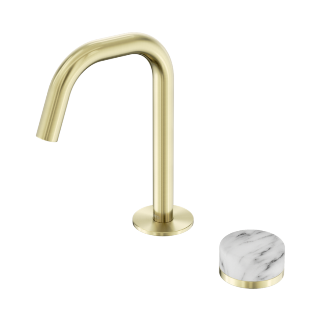 Robinet de lavabo encastré Sorrento – Arabescato Corchia – 2 trous – Sortie droite – Or brossé