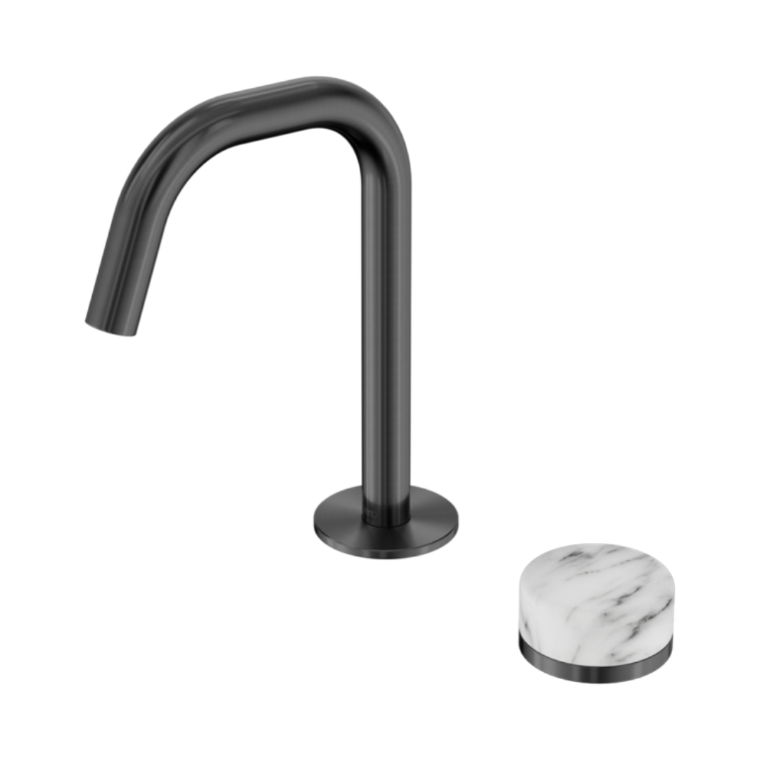 Robinet de lavabo encastré Sorrento – Arabescato Corchia – 2 trous – Débit droit – Gris gun metal