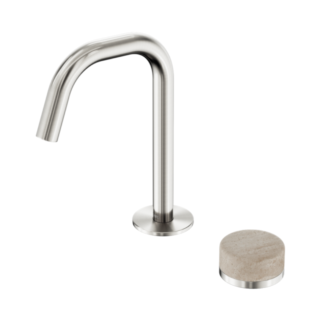 Robinet de lavabo encastré Sorrento – Travertin de Rome – 2 trous – Débit droit – Nickel brossé
