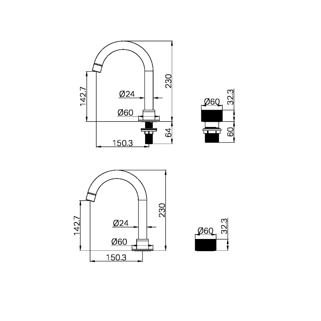 Type de produit: Robinet de Lavabo Encastré – 2-Trous