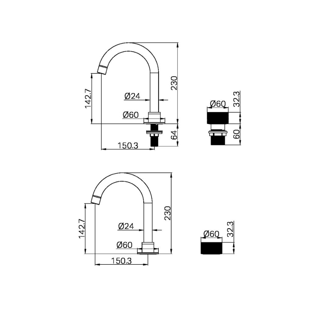 Type de produit : Robinet de lavabo encastré – 2 trous
