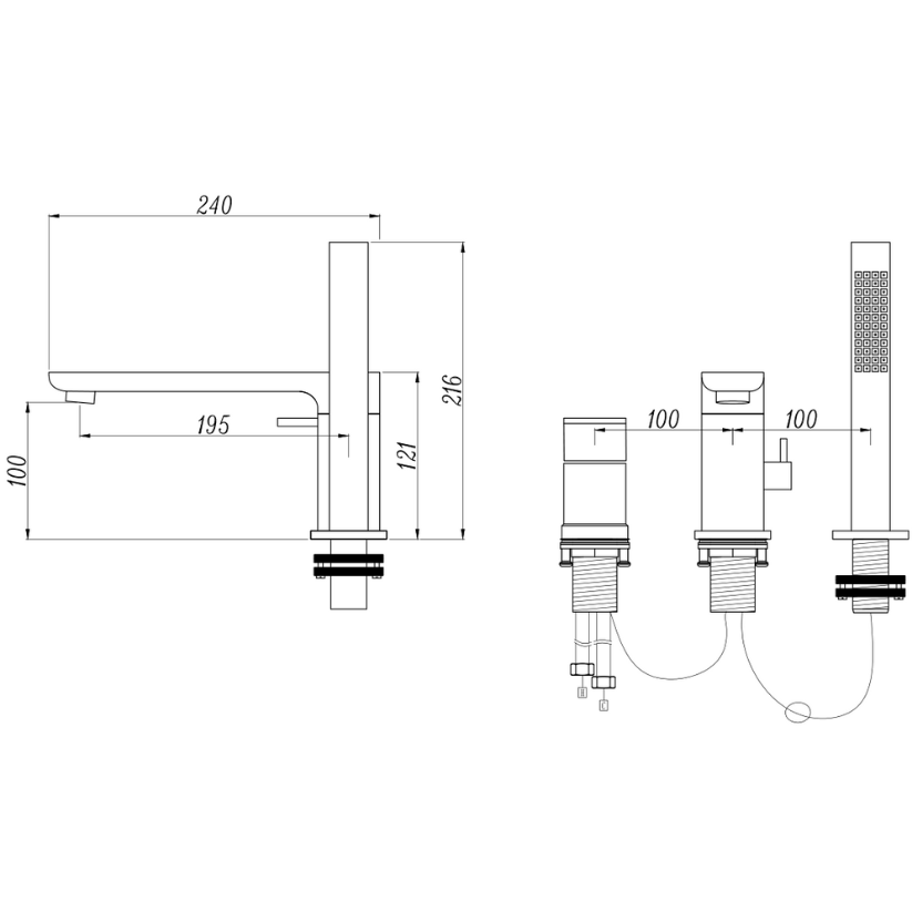 Robinet de baignoire indépendant Lisandro – Sortie d'eau en cascade – Nickel brossé