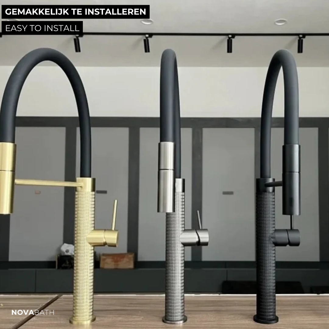 Avec le robinet de cuisine de NovaBath, chaque geste dans la cuisine devient une expérience de luxe – élégant, convivial et durable.