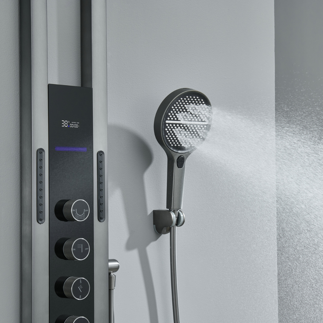Panneau de douche thermostatique Marcelo – Affichage numérique - Gris gunmetal