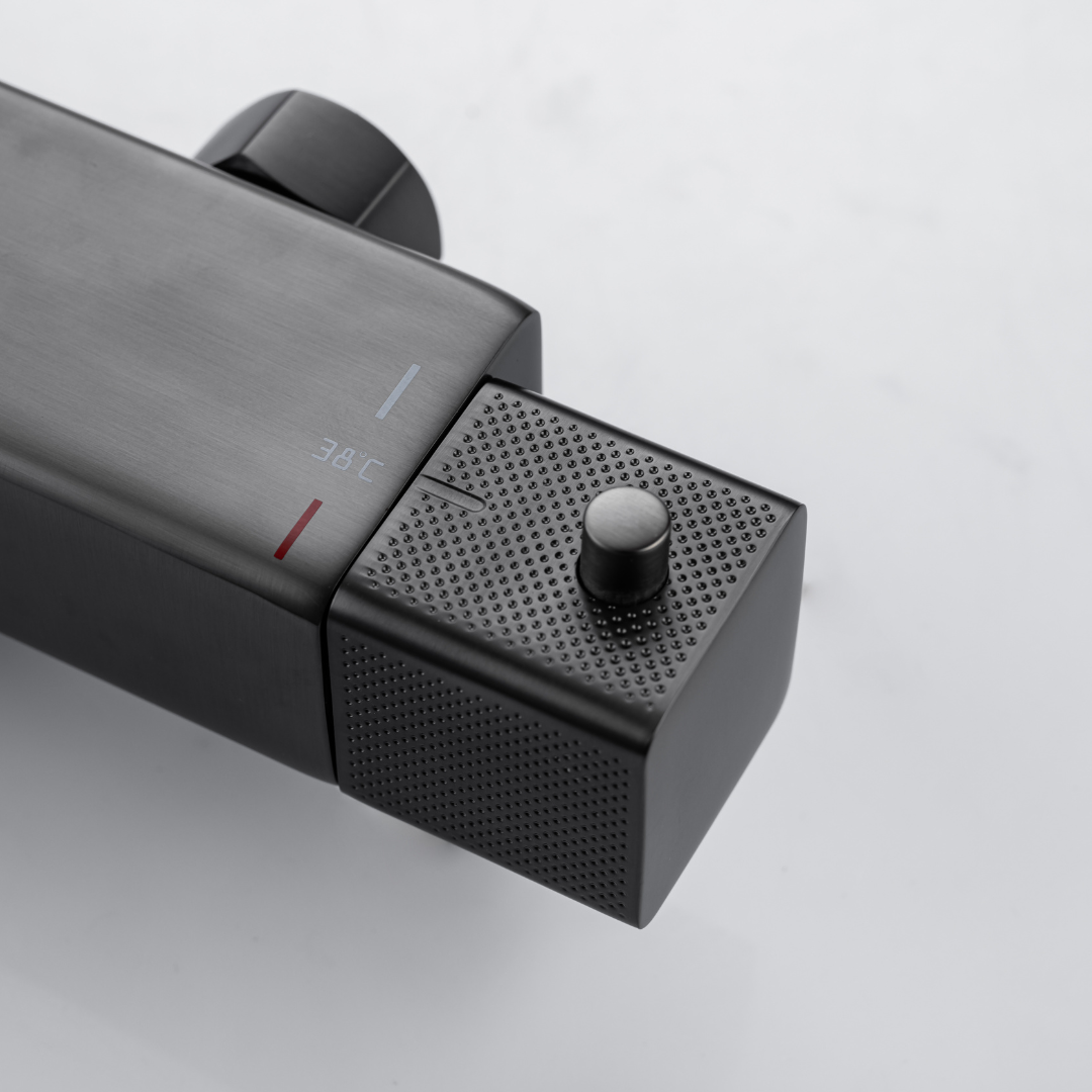 Le Angelo en Gunmetal Grey est parfait pour les salles de bains avec une ambiance industrielle ou moderne. Le robinet thermostatique protège contre les variations de température et assure confort et sécurité, jour après jour.