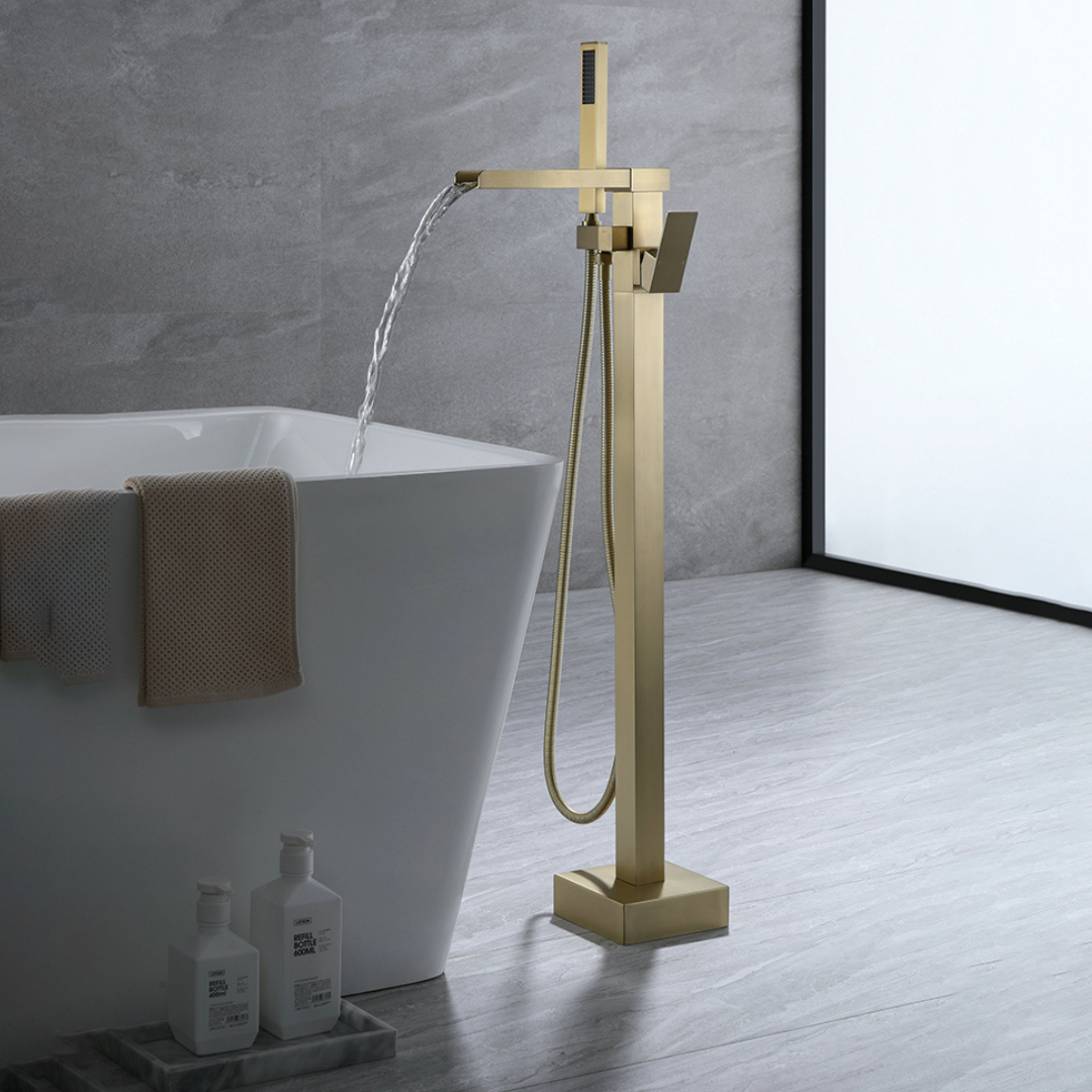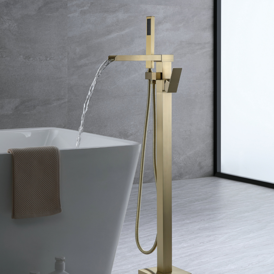 Robinet de bain indépendant Lisandro – Sortie d'eau en cascade – Or brossé